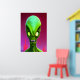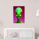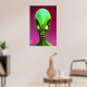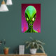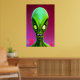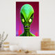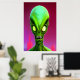 A portrait of a green alien with a big head and green eyes. This is a AI generated art.