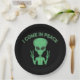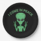 Green Alien I Come In Peace Extraterrestrial UFO Paper Plate