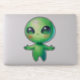 Whimsical green alien sticker - child like.