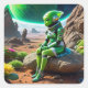 Green Alien Thinker Pose Square Sticker