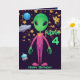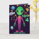 Green Alien UFO Add Name Age Birthday Card - Coordinating wrapping paper available
