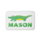 Bath mat design features an original marker illustration of a green and yellow alligator. Just personalise with your information.