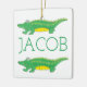 Ornament features an original marker illustration of a green and yellow alligator or crocodile. Just personalize with your information.