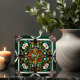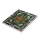 Green & Amber Rose Mandella Stained-Glass Look Tile
