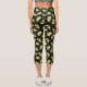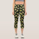 Green and Black Avocado Pattern Capri Leggings