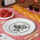 Beautiful vintage Christmas sleigh with black and white buffalo check seat and decorated with packages in vivid green jeweltones and black. Personalise with your own text. Matching napkins, cups, and coasters available.