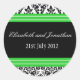 Green and Black damask wedding sticker which can be used as an invitation seal.