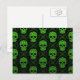 This unique green and black pattern is inspired by Day of the Dead sugar skulls. Each symmetrical skull is decorated with intricate lines and dot patterns with flower pedals around each eye. Large swirling lines appear in between the skulls which gives the design a Victorian feel. A large five point star appears in the middle of each skulls forehead with a small heart shape appearing just underneath. This stunning pattern is a beautiful and stylish celebration of The Day of the Dead.