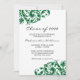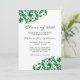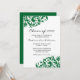 An elegant green swirl decoration is featured on this cheap graduation announcement. Perfect for a high school graduation, college graduation or graduation party! Illustration by © Mujka Design