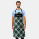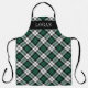 Festive seasonal holiday apron features a classic hunter green, black, and white watch Scottish tartan plaid pattern with white serif monogram text that can be personalised with a name. Whether you're cooking Christmas dinner, baking holiday cookies, or doing dishes, you'll look stylish this holiday season!