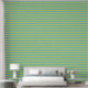 Symmetrical grid of crumpled paper textures in alternating greenish-yellow and light blue, creating a vibrant, tactile striped pattern with depth and visual rhythm