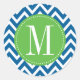 Green and Blue Chevron Custom Monogram Classic Round Sticker