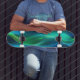 Green and blue glowing wavy lines skateboard