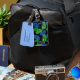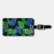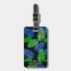 Features a tropical palm leaf design, in green and blue. Personalise with a name on the front, and a name and address on the back.