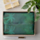 This design showcases bright green and blue palm trees on a blue-green background. Perfect for decoupage art, paper crafts, or gift wrap.