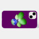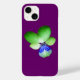 This awesome iPhone case features a photograph of a wild Pansy flower. The photo has been artificially coloured resulting in a pansy with glowing green petals and a bright blue centre. The background is purple to complement the colours of the flower.