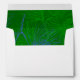 An A7 envelope lined with a forest green background with a blue and green pine pattern created from a vintage etching.