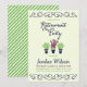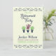 Retirement Party invitation featuring flourishes and potted plants. Card includes a matching green stripes pattern back side.
