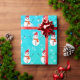 Green and Blue Snowman with snow Christmas Wrapping Paper