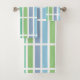 Classic, trendy striped pattern of soothing, blue and green hues.