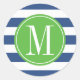 Green and Blue Stripes Custom Monogram Classic Round Sticker