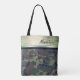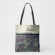 On this stylish tote is an olive green frosted glass texture along with a shimmery green and black ribbon where you can personalise it to make it uniquely your own then below that is a green and brown camouflage pattern for contrast. Modern chic vibes.