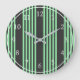 Green and charcoal five stripes pattern large clock