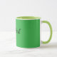 Green and Chartreuse green coffee mug with black text, ready to personalize with your own name/text. Cursive handwriting.