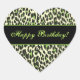 Green and Cream Leopard Happy Birthday Heart Sticker