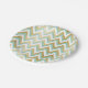 Green and Faux Gold Foil Chevron Ikat Pattern Paper Plate