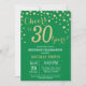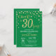 30th Birthday Invitation with Green and Gold Glitter Diamond Background. Gold Confetti. Adult Birthday. Male Men or Women Birthday. For further customisation, please click the "Customise it" button and use our design tool to modify this template.