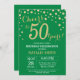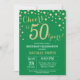 50th Birthday Invitation with Green and Gold Glitter Diamond Background. Gold Confetti. Adult Birthday. Male Men or Women Birthday. For further customisation, please click the "Customise it" button and use our design tool to modify this template.