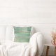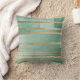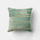 A green, hazy background with vertical gold stripes creates a beautiful throw pillow.