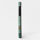 A shaded green background, with gold stripes running horizontally and vertically, creates a beautiful and visually interesting iPhone case.