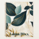 Abstract green leaves with gold accents on an off-white background creates a beautiful planner that you will love to use.