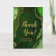 This elegant and glamourous wedding thank you card features a green agate marble background with faux gold glitter accents. The text combines handwritten script and modern sans serif fonts for a classy and sophisticated look. This will be perfect for autumn fall and winter weddings.