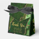 This elegant and glamourous wedding thank you favour bag features a green agate marble background with faux gold glitter accents. The text combines handwritten script and modern sans serif fonts for a classy and sophisticated look. This will be perfect for autumn fall and winter weddings.