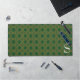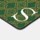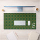Decorative desk mat done in a green and gold brocade design. Personalise the custom white one letter monogram to suit your needs. Great gift idea for her.