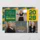 Green and Yellow Gold Modern Chalkboard Graduation Photo Invitation on Grey Chalkboard