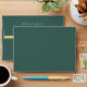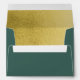 A dark emerald forest green 5x7 envelope with a faux Gold foil Lining Inside. This elegant and sparkly metallic green and gold all purpose envelope is a classy way to send invitations. You can customise and personalise your name and address on the back flap.
