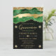 Green and Gold Glam Tears Bokeh Quinceanera Invitation