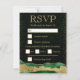 Green and Gold Glam Tears Bokeh Wedding RSVP Card