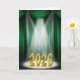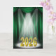 Gold 2026 text is in the spotlight on stage with a green curtain backdrop for the graduate.