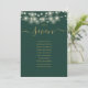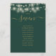 These elegant emerald green and gold double-sided table number seating chart cards featuring pretty string lights are perfect for all celebrations. Designed by Thisisnotme©