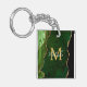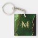 This keychain features an elegant and glamourous agate marble background with geode gemstone detailing and faux gold glitter accents. The monogram combines handwritten script and modern sans serif fonts for a classy and sophisticated look. This will make the ideal gift as it can be customised with a name and initial. The deep green hues make it perfect for autumn fall and winter.