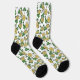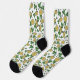 These fun green and white St. Patty's Day socks feature a pattern with hand-drawn Irish gold coins and green shamrocks in black in. The phrase, "Lucky You" is scattered all throughout.