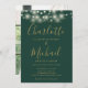 Featuring pretty string lights and signature style names, this elegant wedding invitation can be personalized with your wedding day details in chic gold lettering on an emerald green background with your chosen photo on the reverse. Designed by Thisisnotme©