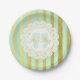 Green and Gold Striped Personalised Baby Shower Plate. Just add in either mum to be's or baby's name in the customise area. Let's eat cake.