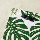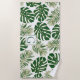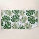 Green and gold tropical leaves and monogram beach towel. This design features leaves of Split Leaf Philodendron (Monstera deliciosa) or Swiss Cheese Plant and palm leaves in green with gold outline.