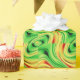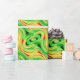 vibrant abstract design features flowing chrome waves in green, golden, and red, creatic a dynamic look.